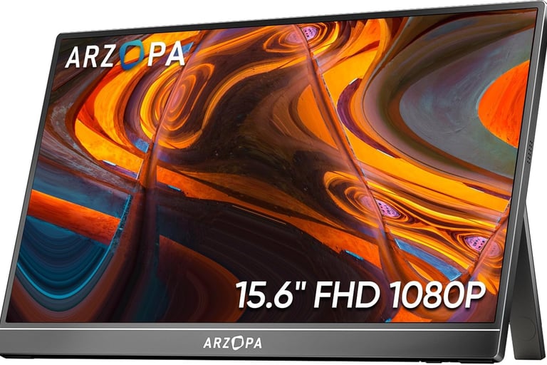 O monitor portátil Arzopa de 15,6” foi projetado para mobilidade, com estrutura metálica leve e apenas 0,35” de espessura. O painel IPS Full HD oferece ampla abertura de 178°, garantindo consistência cromática mesmo quando utilizado em ângulos não convencionais, característica essencial para quem trabalha fora de ambientes controlados.